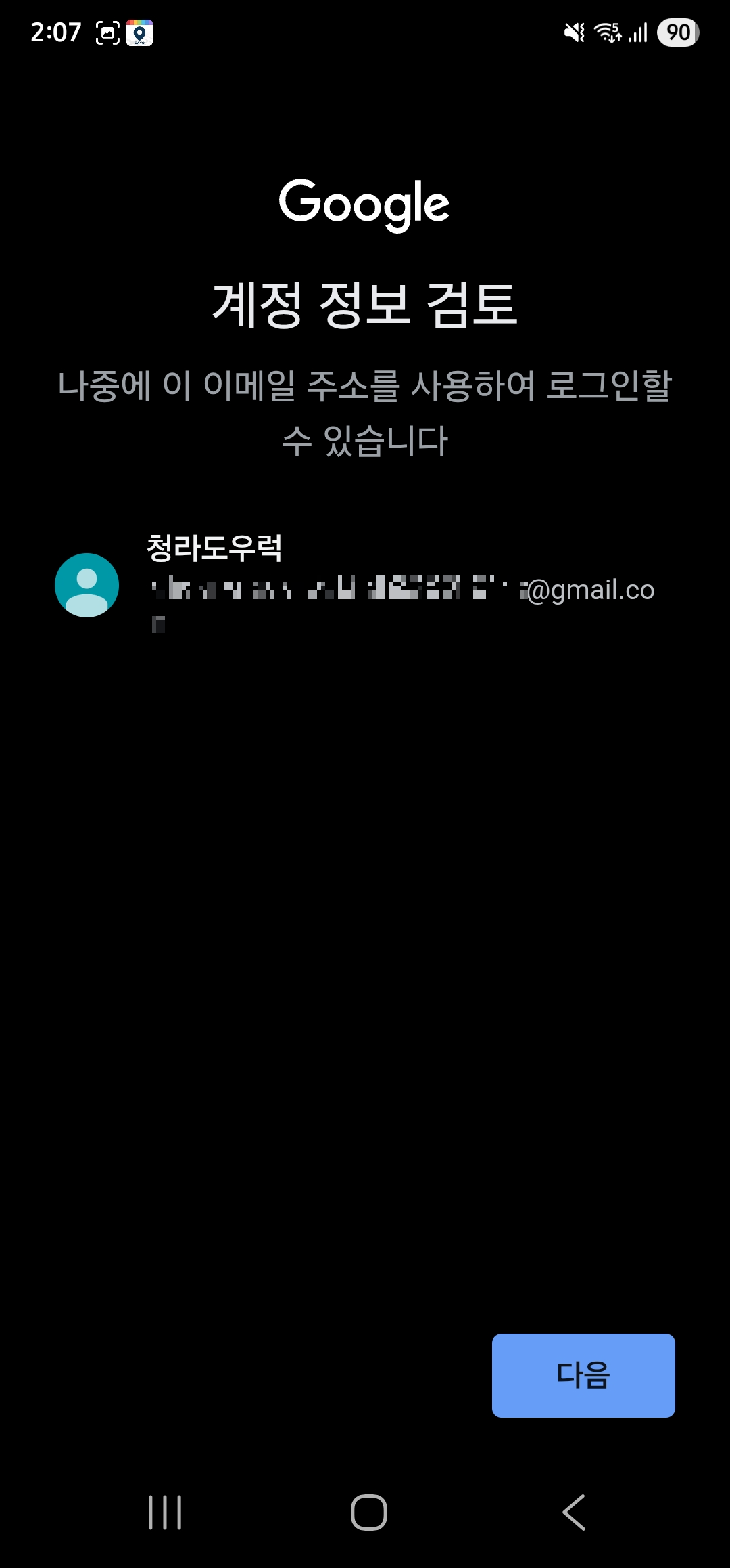 계정 추가 화면에서 Google을 선택하면 로그인 화면이 나타납니다. 여기서 기존 계정 로그인이 아닌 새 계정 생성을 선택해야 합니다. 이후 진행 과정은 비교적 단순하지만, 몇 가지 선택지에서 주의가 필요합니다.