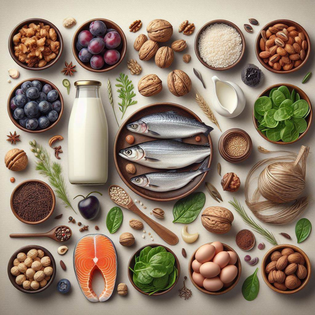 - 비타민 D: 연어, 고등어, 달걀 노른자, 버섯
