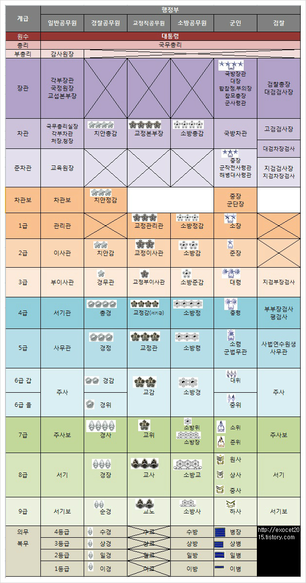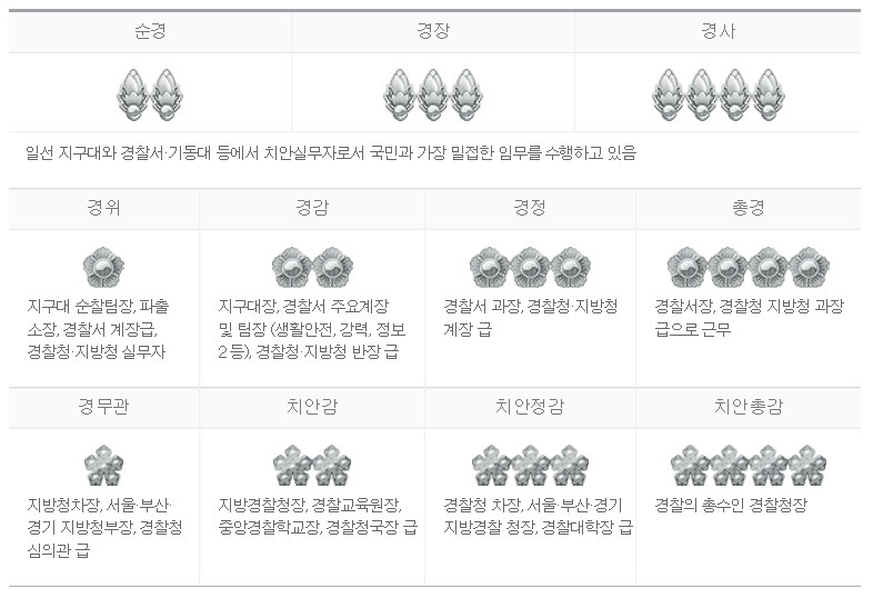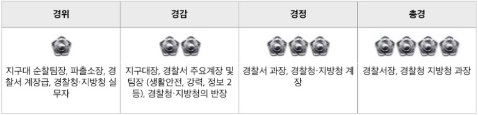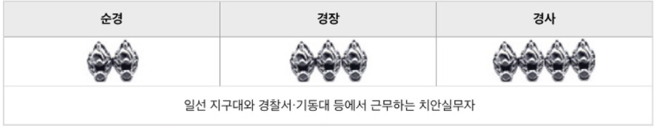 경찰 직급체계, 계급표, 형사 계급 경찰계급도