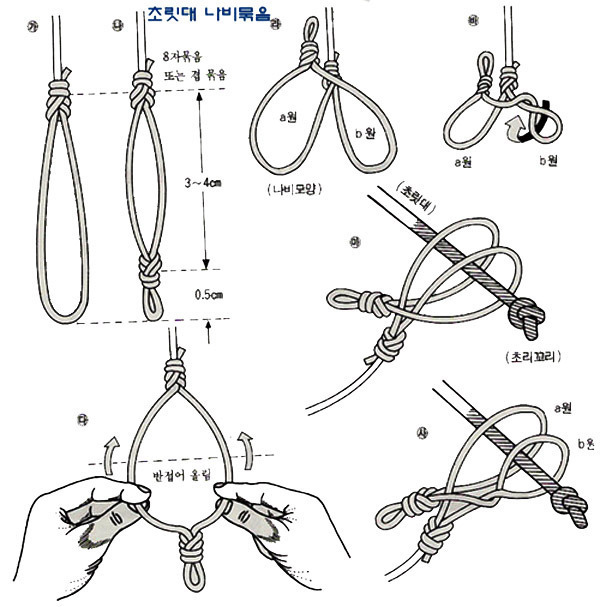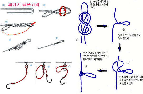 - 작은 어종을 낚는 데는 묶기 간단하면서도 충분한 강도를 가진 매듭이면 됩니다.