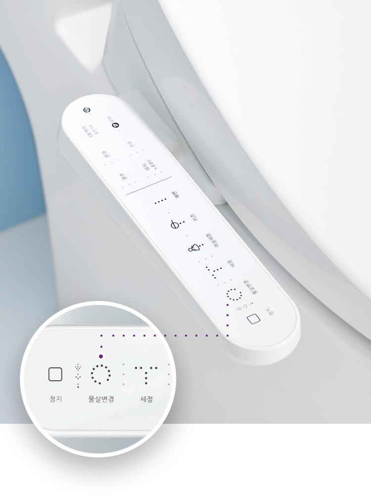 비데 본체 전면부에 있는 작은 수신창을 깨끗한 마른 천으로 닦아주세요. - 리모컨 위치 조정