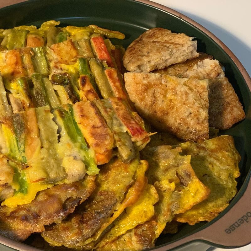 전통적으로 막걸리와 가장 잘 어울리는 안주로 꼽히는 파전은 고소하고 기름진 맛이 막걸리의 부드러운 맛과 완벽하게 조화를 이룹니다. - 김치전