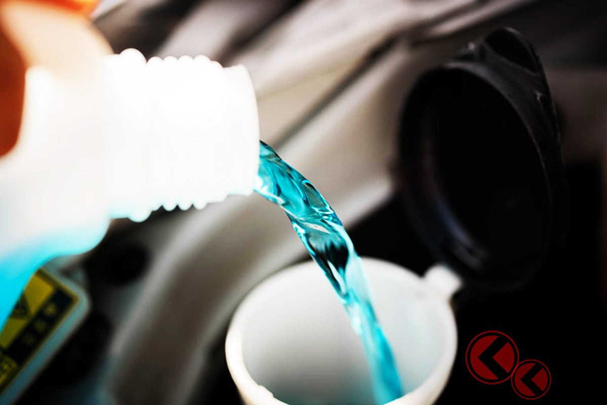3. 깔때기 또는 워셔액 용기 입구를 이용해 천천히 주입