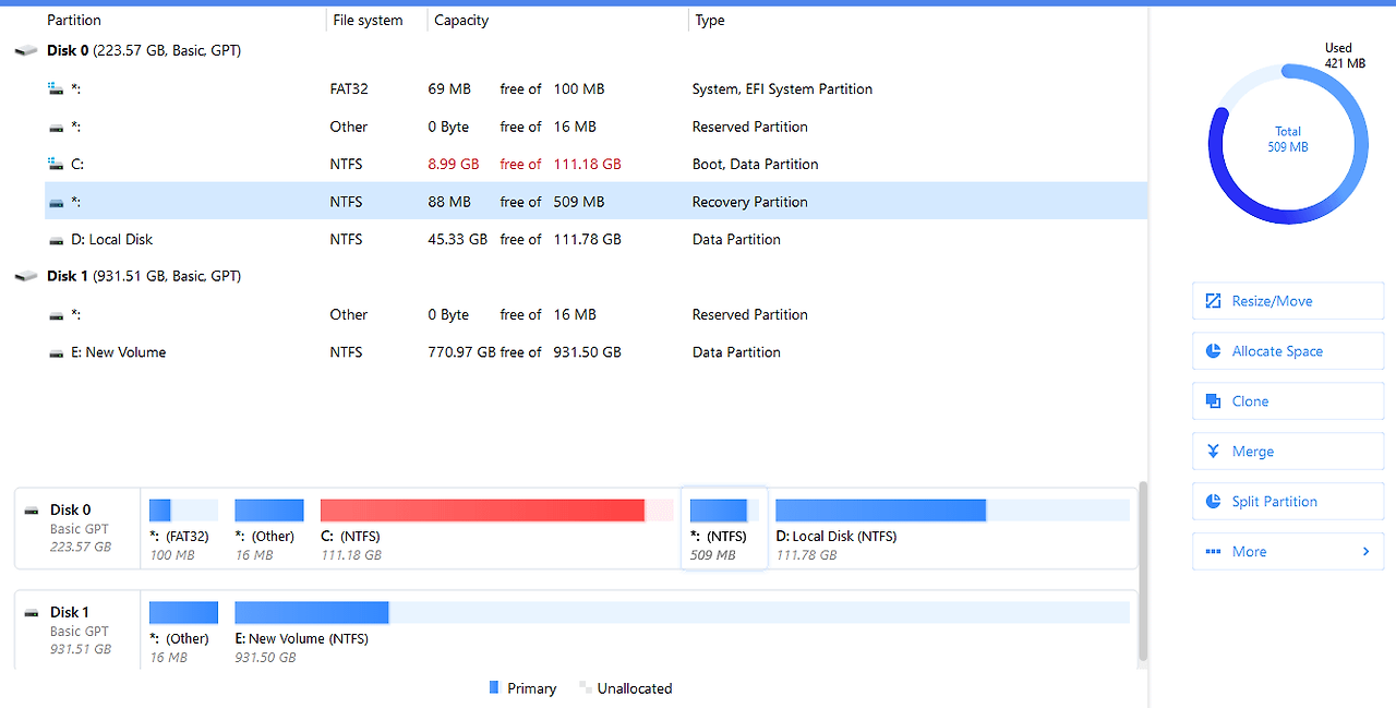 컴퓨터를 처음 구입했을 때 디스크를 확인해 보면 일반적으로 여러 개의 파티션이 존재합니다. 이는 제조사가 시스템 복구 기능을 위해 미리 만들어 놓은 영역 때문입니다. 그러나 운영체제를 직접 설치하거나 SSD를 교체한 이후에는 이러한 복구 파티션이 불필요해지는 경우도 많습니다. 이때 복구 파티션을 삭제하고 하나의 파티션으로 합치면 디스크 공간을 보다 효율적으로 사용할 수 있습니다.