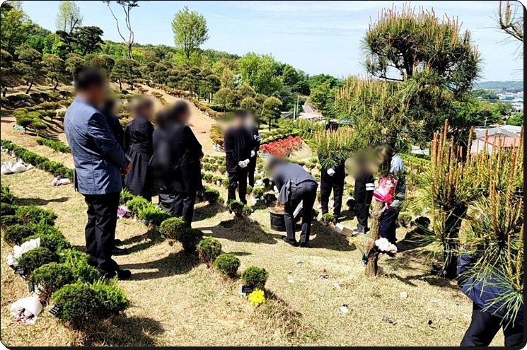 술잔을 세 번 나누어 올리며 고인에게 마지막 인사를 전합니다. 이 과정은 고인과의 작별을 상징합니다. - 4단계: 성묘 및 정리
