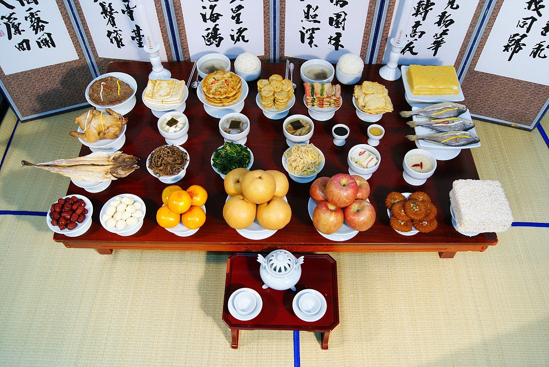 - 젓가락은 나란히 놓고, 음식의 방향은 망자를 향하게 정렬