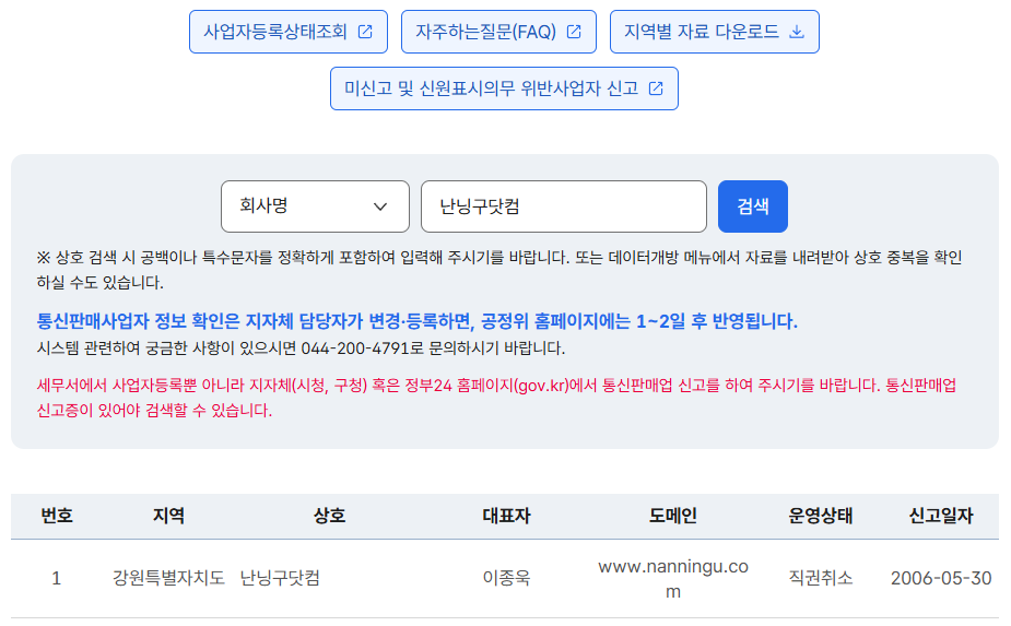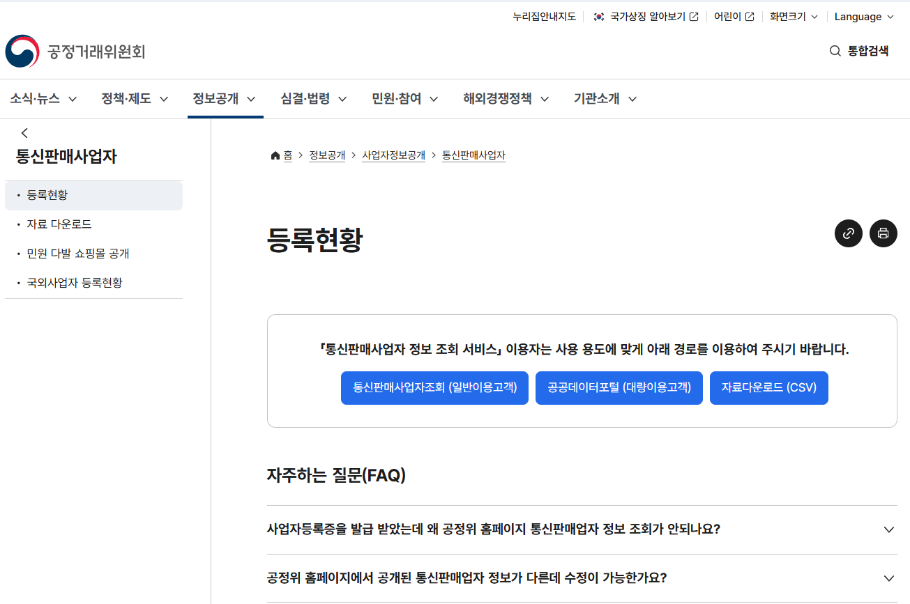 1. 공정거래위원회 ‘통신판매사업자’ 조회