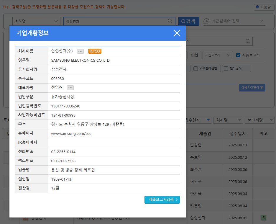 법인사업자라면 금융감독원에서 운영하는 DART(전자공시시스템)에서 상호명으로 사업자번호 찾기를 통해 기업 정보를 확인할 수 있습니다.