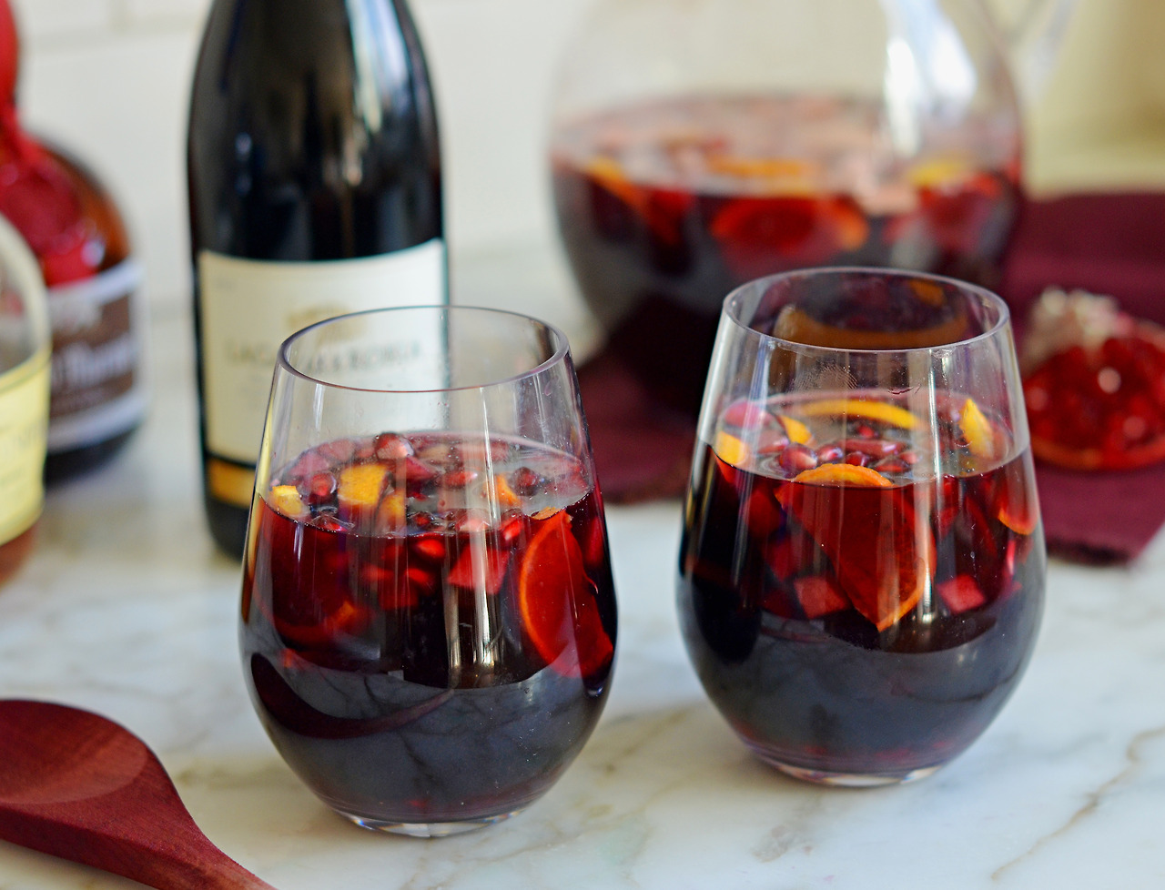 - 와인, 오렌지 주스, 레몬 주스를 붓고 다시 한번 잘 섞어줍니다.