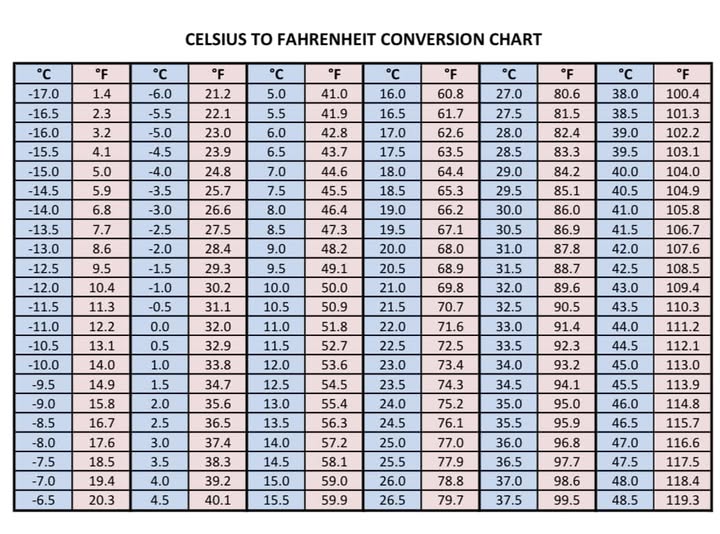 - 100°C = 212°F