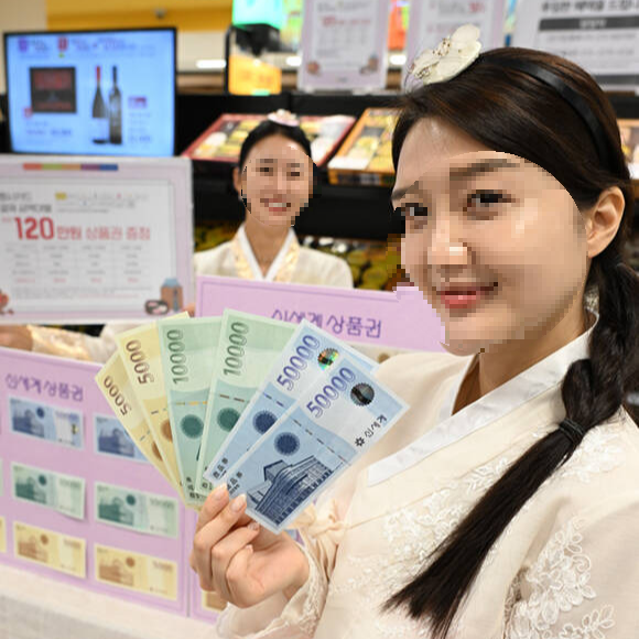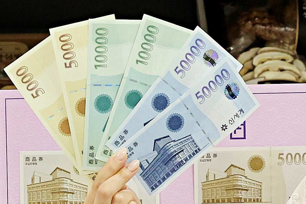 - 원하는 금액권 선택 (예: 10만원권 → 5만원권 2장)