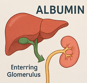 신장에서 단백질이 소변으로 빠져나가는 현상을 ‘단백뇨’라고 합니다. 알부민이 소변으로 배출되는 경우(알부민뇨)는 신장 질환의 중요한 초기 신호일 수 있으며, 당뇨병성 신증 등 신부전 질환을 조기 진단하는 데 활용됩니다.