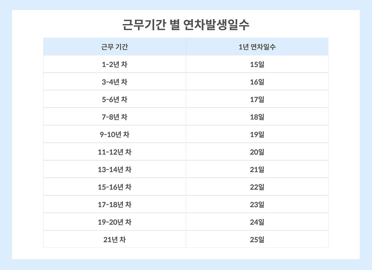 3년 이상 계속 근무한 경우, 최초 1년을 초과하는 계속 근로 연수 매 2년마다 1일의 유급휴가를 추가로 받을 수 있습니다. 이 추가 유급휴가는 최대 25일까지 가능합니다.