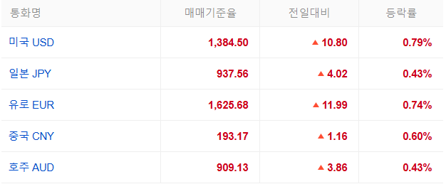 - 중간시장 환율: 1 USD = ₩1,384.50 (2025-07-25 22:05 매매기준)