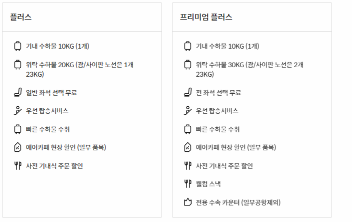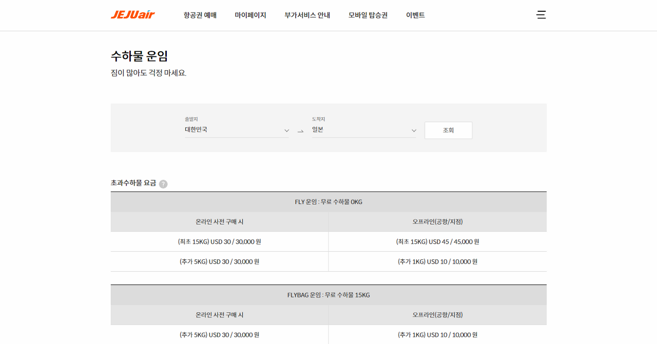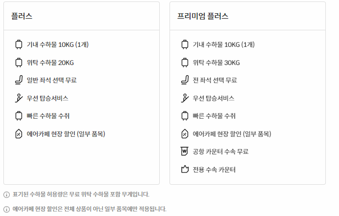 - 항공권 운임 종류에 따른 무료 위탁 허용량 확인