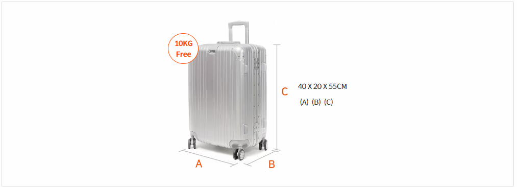 - 기내 수하물: 가로 55cm × 세로 40cm × 높이 20cm