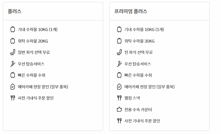 - 추가로 개인 휴대품 1개 허용 (예: 핸드백, 노트북 가방)