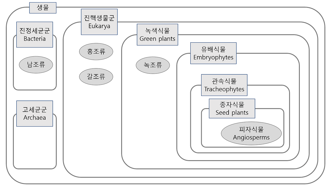 - 도메인(Domain): 모든 생명체를 세 가지 큰 그룹으로 나눕니다. 식물의 경우 주로 '유카리오타(Eukaryota)' 도메인에 속합니다.