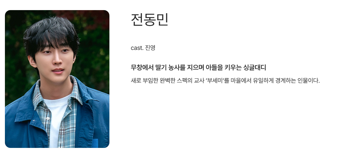 전동민 진영 무창 마을의 딸기 농사꾼, 싱글 대디. 부세미의 정체를 의심