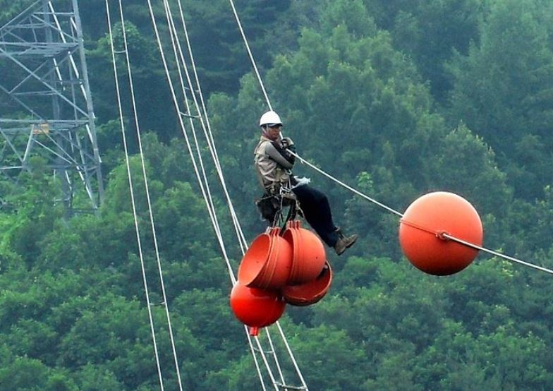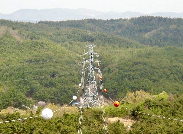 항공장애표시구: 송전탑 전깃줄 빨간공, 고압전선의 공모양 정체