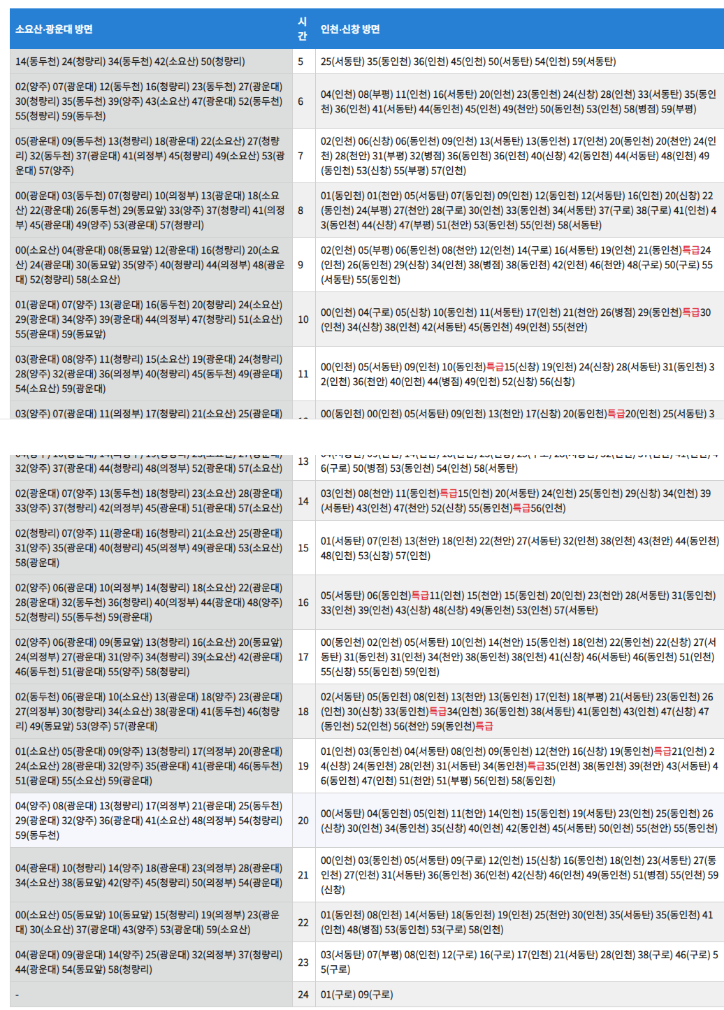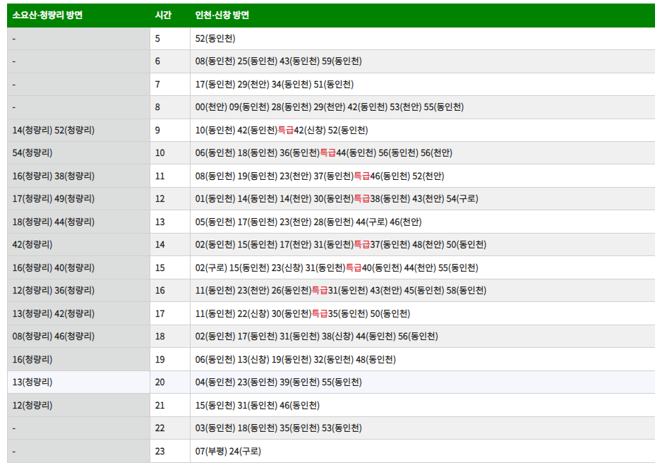 서울 1호선 급행 시간표 및 특급 시간표