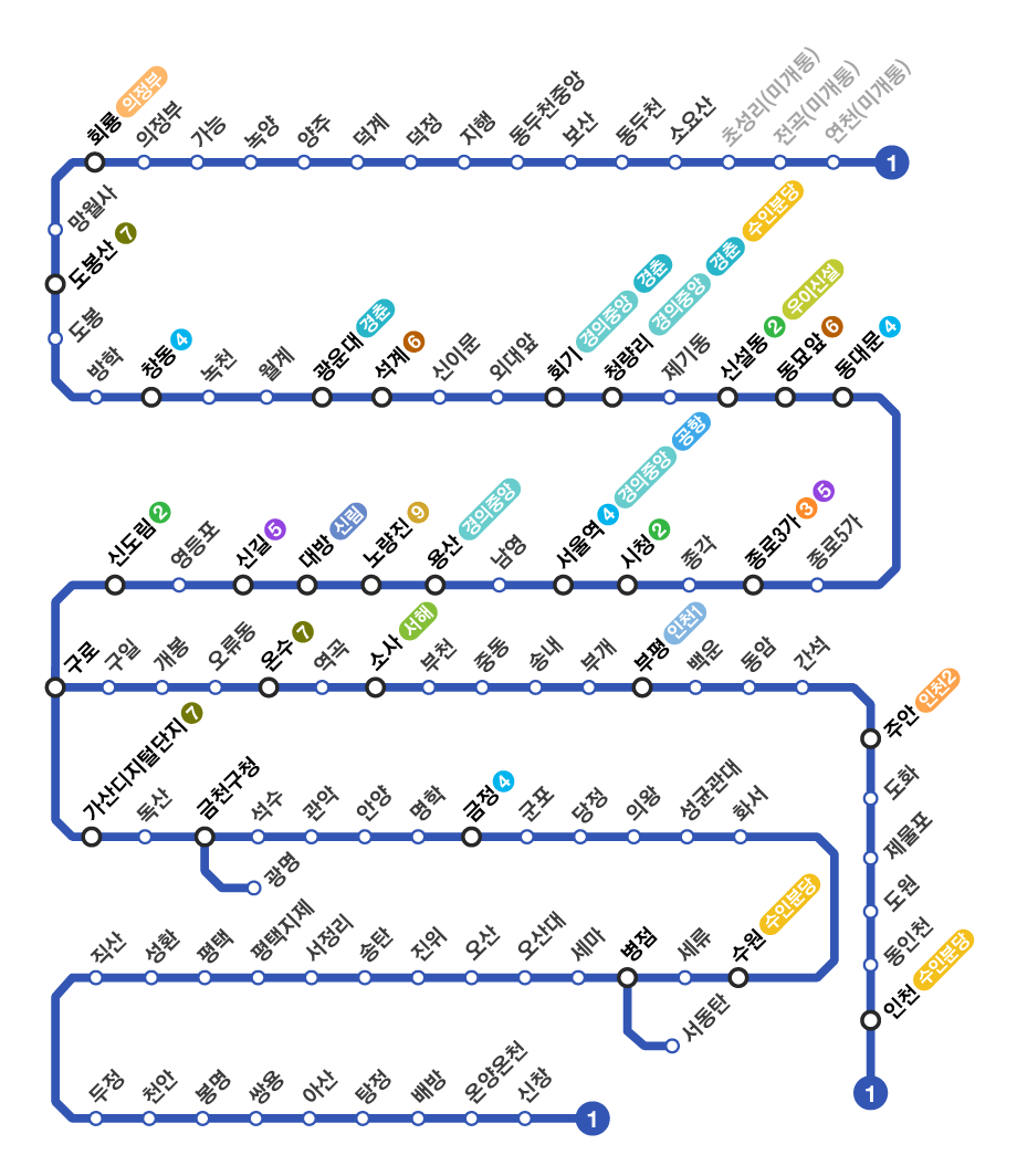 수도권 지하철 1호선 노선도