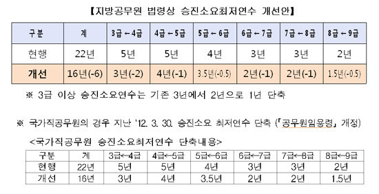 지방공무원 승진소요최저연수와 6급 근속승진 소요연수 기간