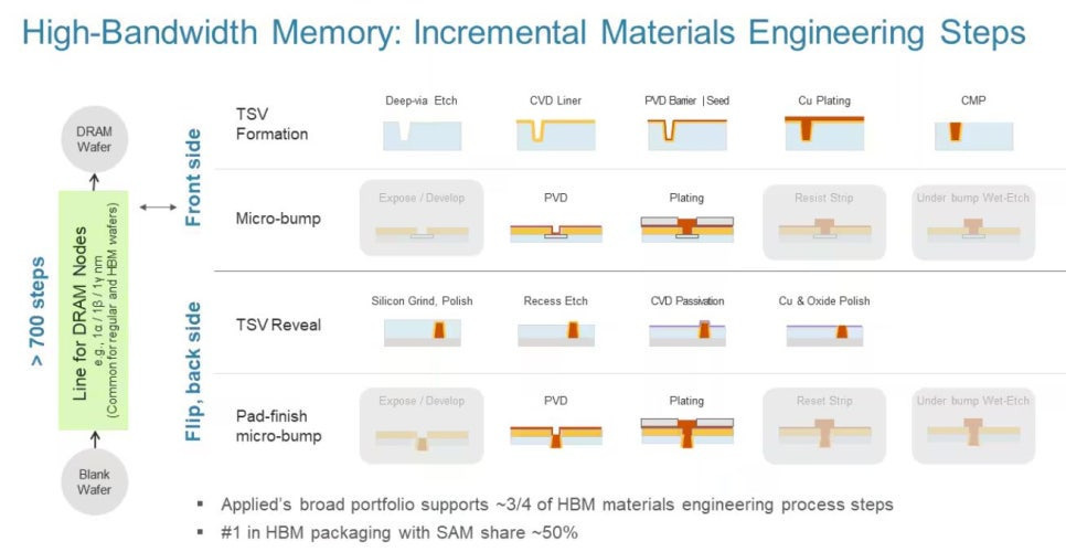 - 적층: D램 다이를 다층으로 쌓는 단계