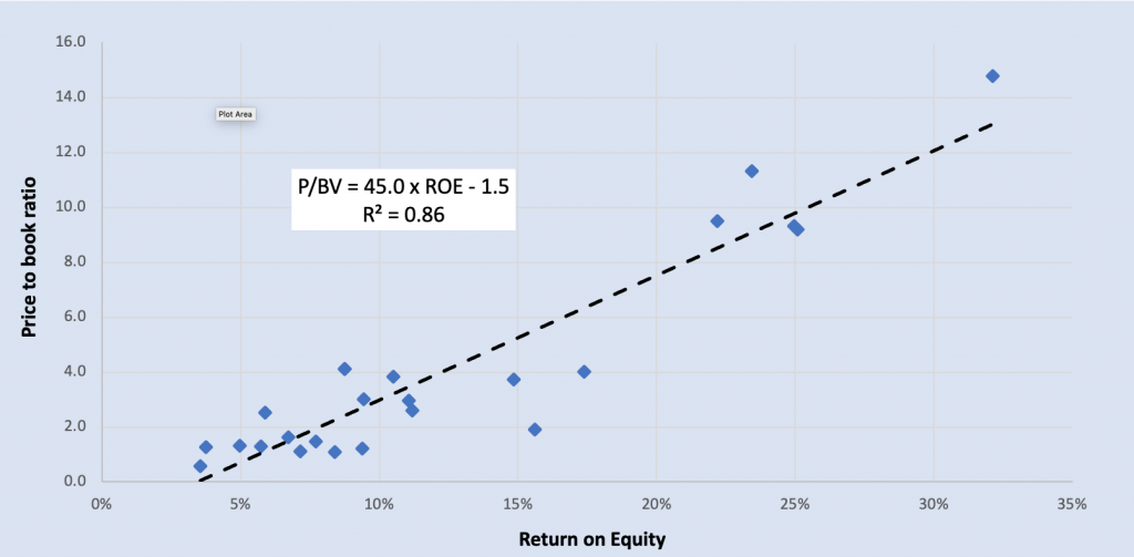 PBR은 기업의 자기자본이익률(ROE)과도 밀접한 관계를 가집니다. 일반적으로 다음과 같은 식이 성립합니다.